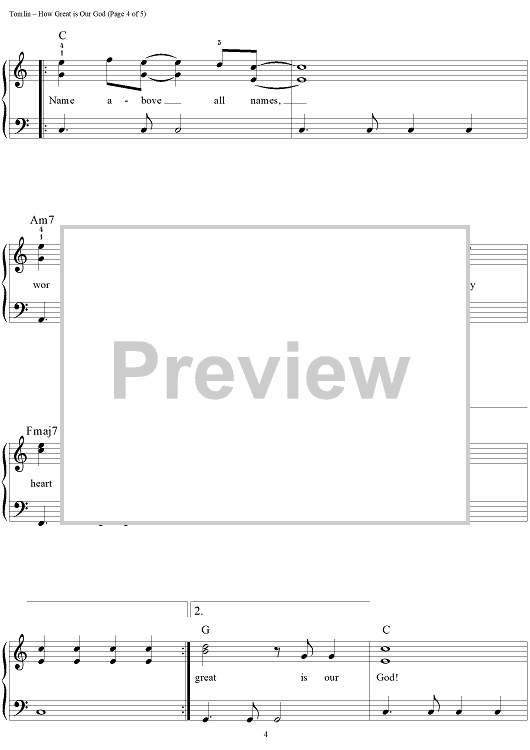 Digital Sheet Music for How Great Is Our God by Chris Tomlin, Jesse Reeves, Ed Cash scored for Easy Piano; id:395344