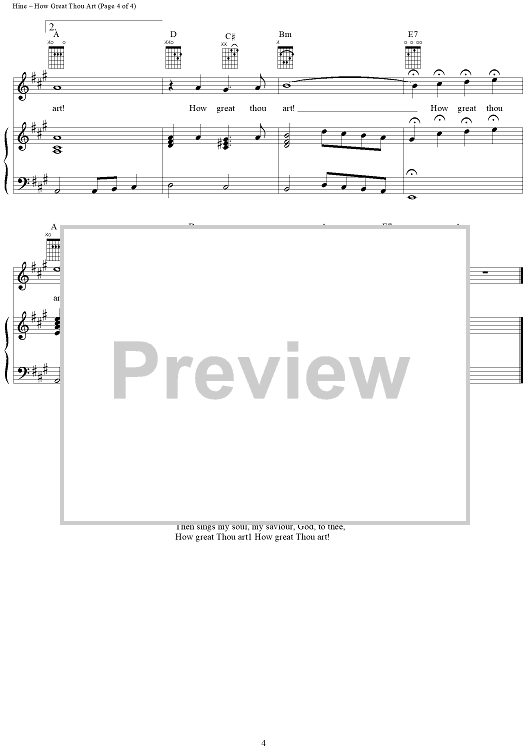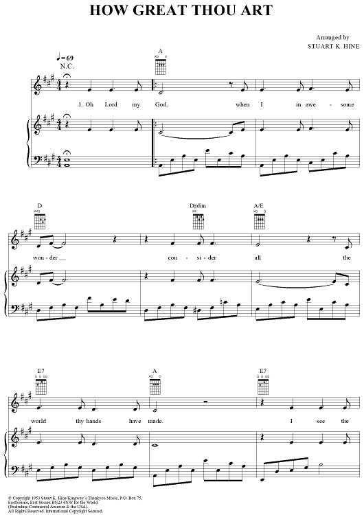 Digital Sheet Music for How Great Thou Art by Stuart K. Hine, Traditional, Daniel O'Donnell scored for Piano/Vocal/Chords; id:378838