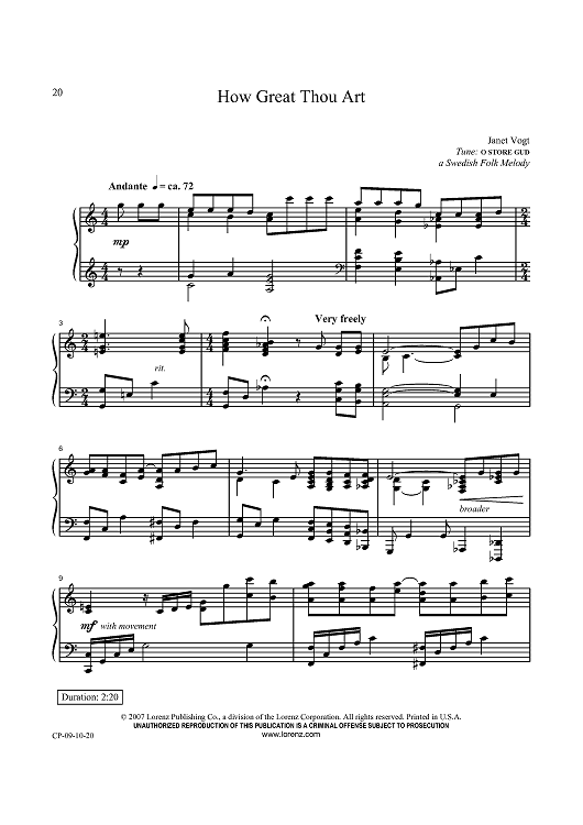 Digital Sheet Music for How Great Thou Art by Janet Vogt, Swedish Folk Melody scored for Piano Solo; id:434408
