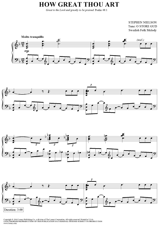 "How Great Thou Art" Sheet Music by Swedish Folk Melody