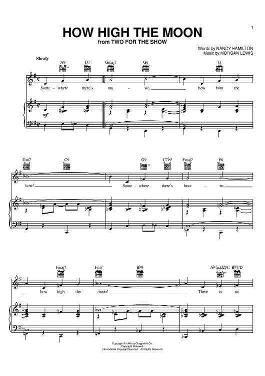 Digital Sheet Music for How High The Moon by Les Paul, Mary Ford, Morgan Lewis, Nancy Hamilton scored for Piano/Vocal/Chords; id:369874