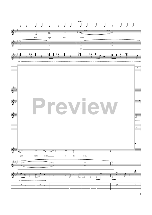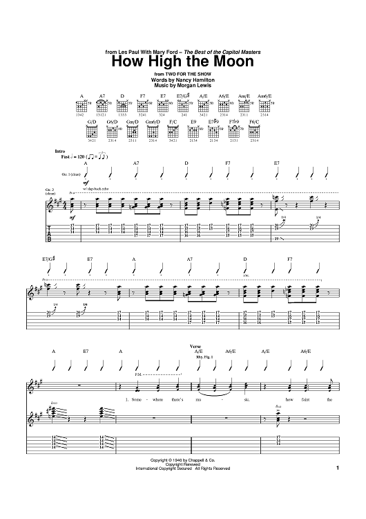 Digital Sheet Music for How High The Moon by Django Reinhardt, Les Paul, Mary Ford, Morgan Lewis, Nancy Hamilton scored for Guitar Tab; id:373324