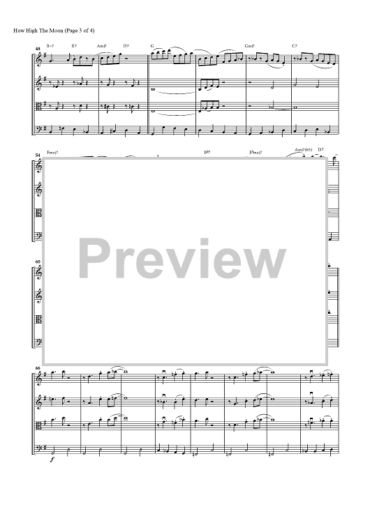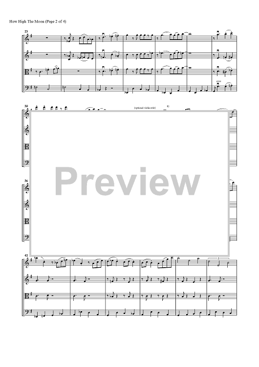 Digital Sheet Music for How High The Moon - Score by Morgan Lewis, Thom Sharp scored for String Quartet; id:462908