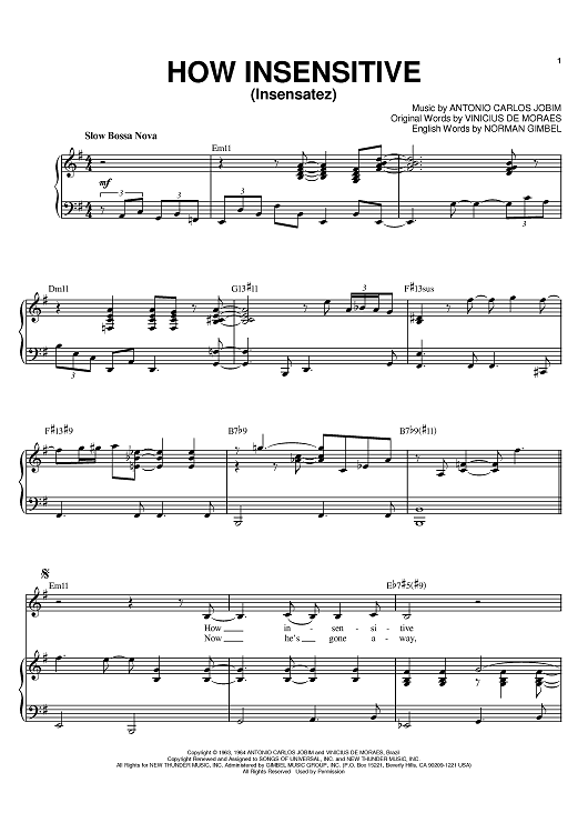"How Insensitive (Insensatez)" Sheet Music by Antonio Carlos Jobim