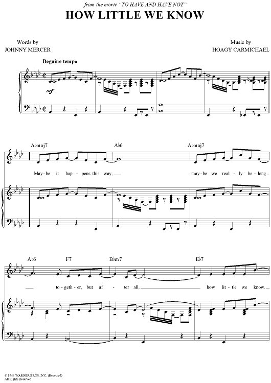 Digital Sheet Music for How Little We Know by Johnny Mercer, Hoagy Carmichael scored for Piano/Vocal/Chords; id:273313