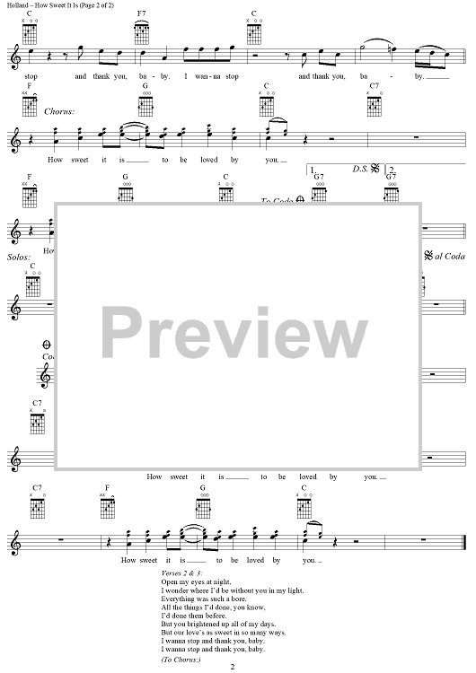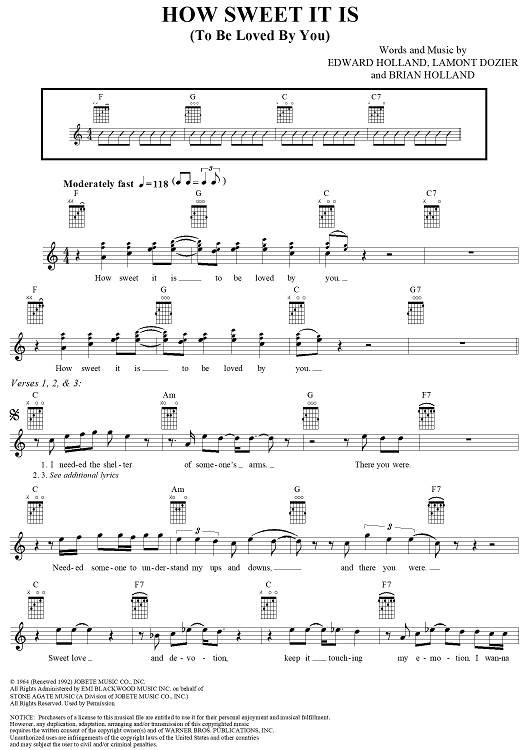 Digital Sheet Music for How Sweet It Is by Jerry Garcia, Lamont Dozier, Brian Holland, Eddie Holland scored for Easy Guitar/Vocal; id:291562