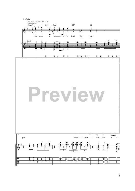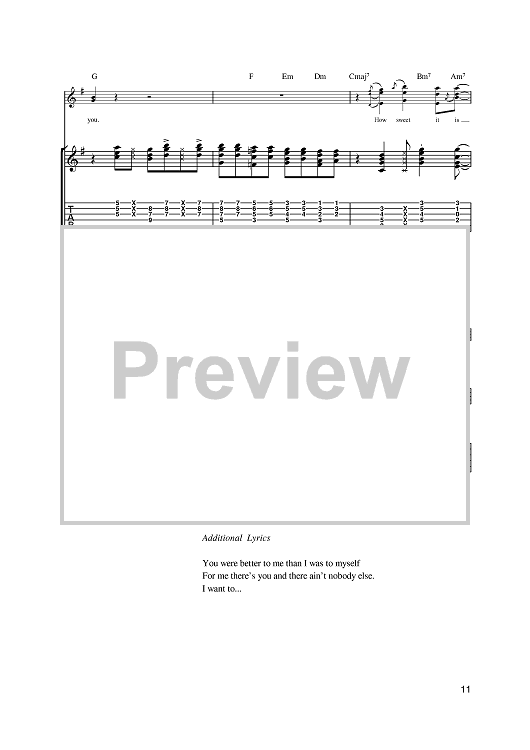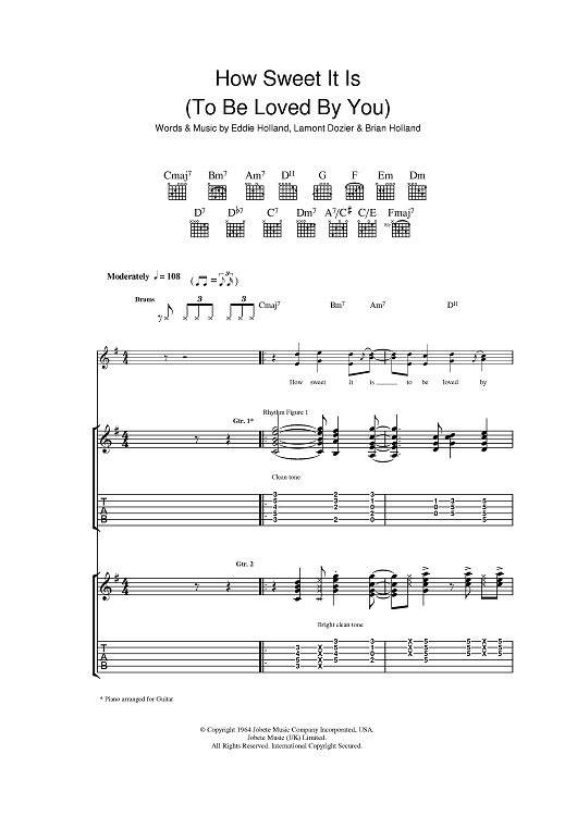 Digital Sheet Music for How Sweet It Is (To Be Loved By You) by James Taylor, Marvin Gaye, Lamont Dozier, Brian Holland, Eddie Holland, Michael Buble scored for Guitar Tab; id:393467