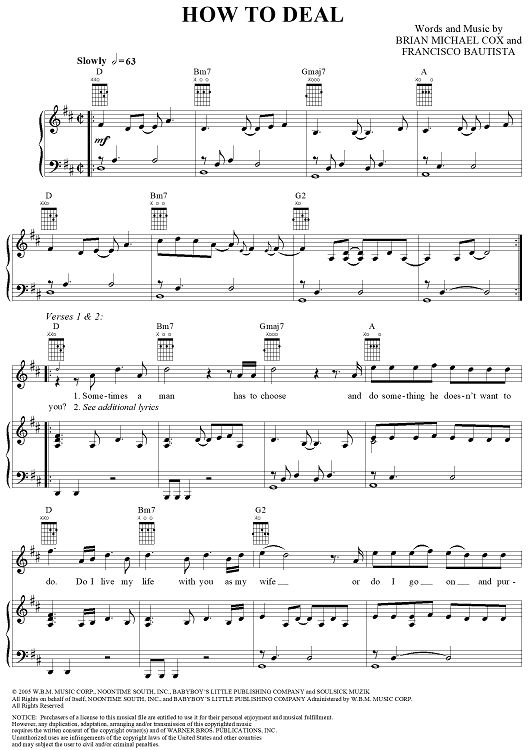 Digital Sheet Music for How To Deal by Bryan-Michael Cox, Francisco Bautista, Frankie J scored for Piano/Vocal/Chords; id:314710