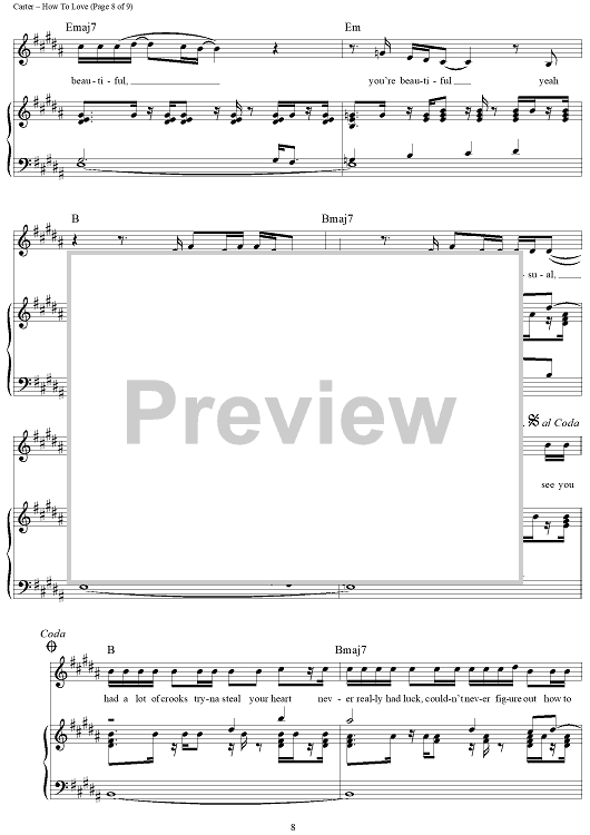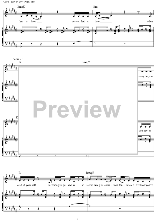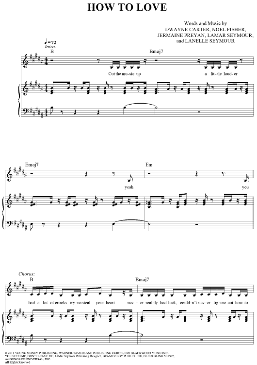 Digital Sheet Music for How To Love by Dwayne Carter, Noel Fisher, Lamar Seymour, Jermaine Preyan, Lanelle Seymour, Lil Wayne scored for Piano/Vocal/Chords; id:425119