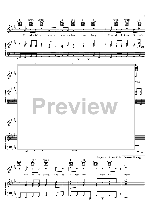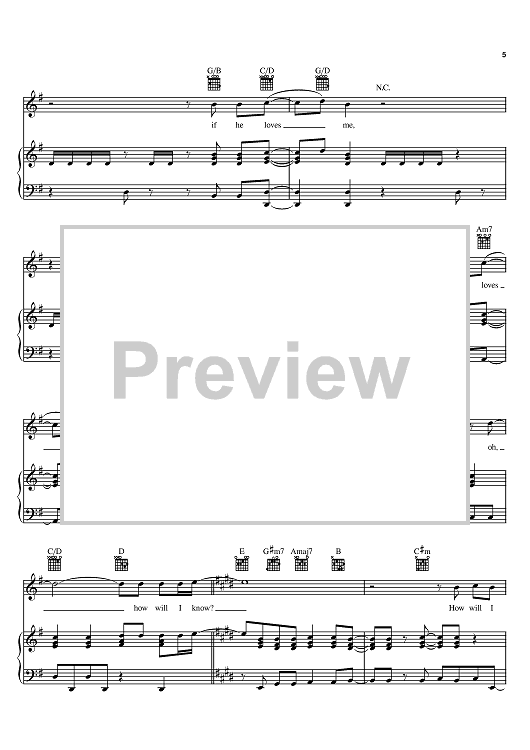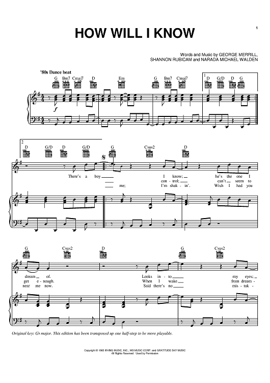 Digital Sheet Music for How Will I Know by George Merrill, Shannon Rubicam, Narada Michael Walden, Whitney Houston scored for Piano/Vocal/Chords; id:367360