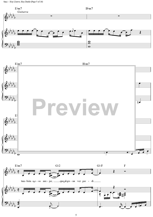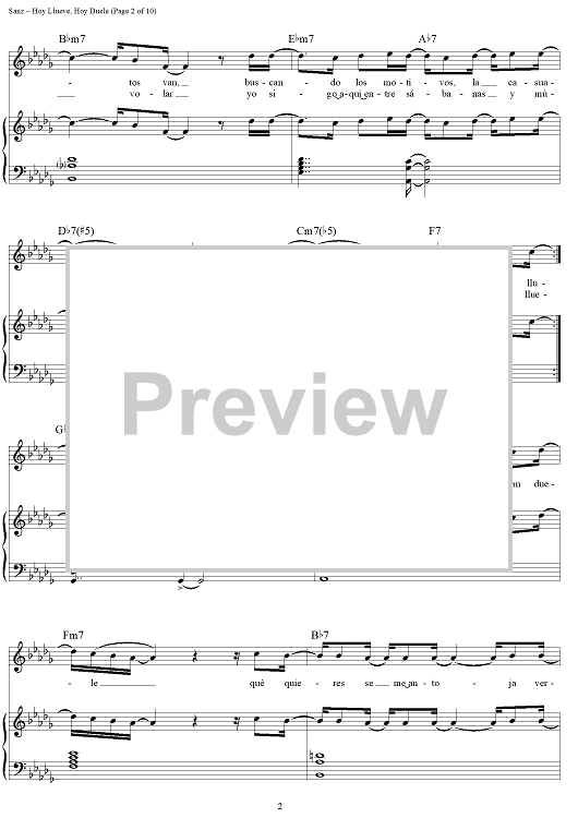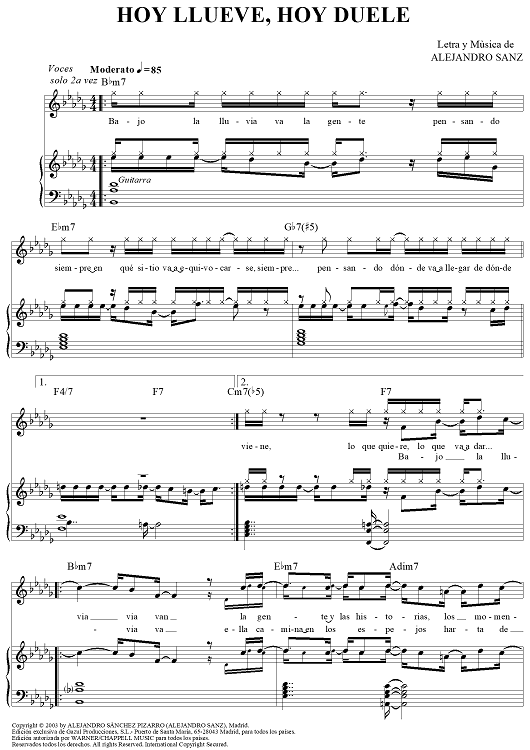 "Hoy Llueve, Hoy Dueve" Sheet Music by Alejandro Sanz