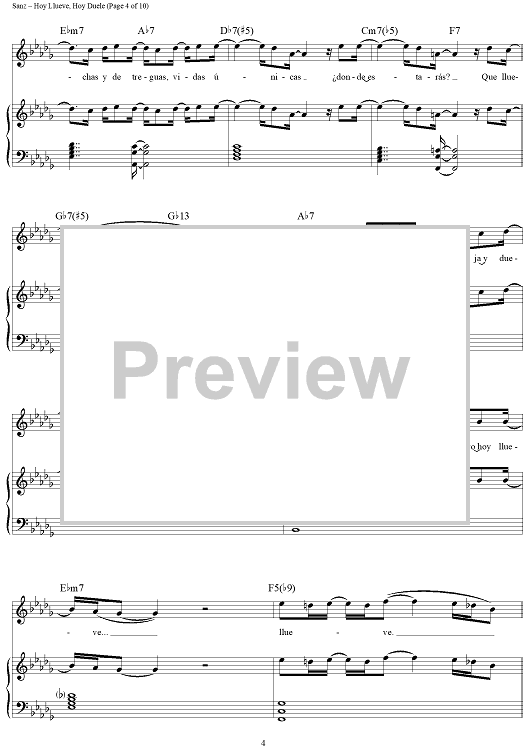 Digital Sheet Music for Hoy Llueve, Hoy Dueve by Alejandro Sanz scored for Piano/Vocal/Chords; id:444749