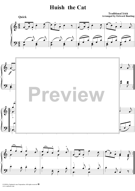 Digital Sheet Music for Huish the Cat by , Edward Bunting, Traditional scored for Piano Solo; id:234605