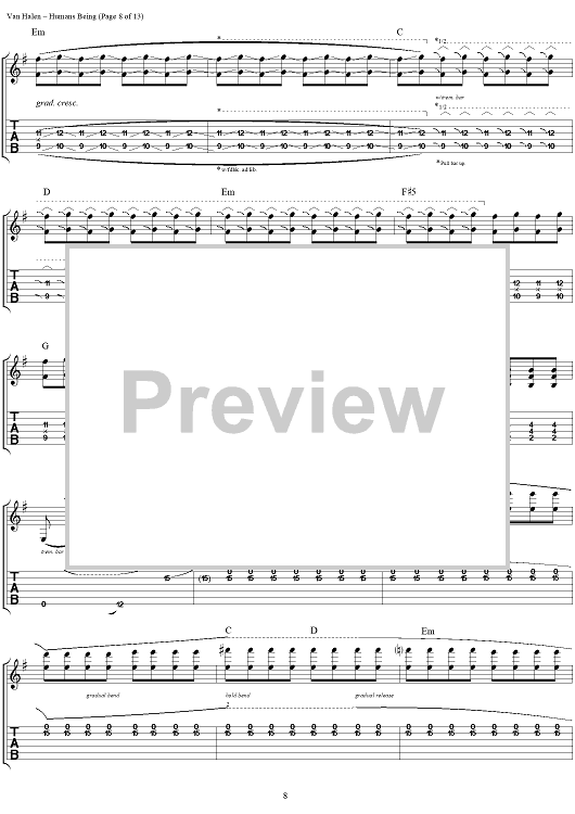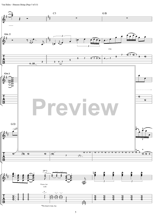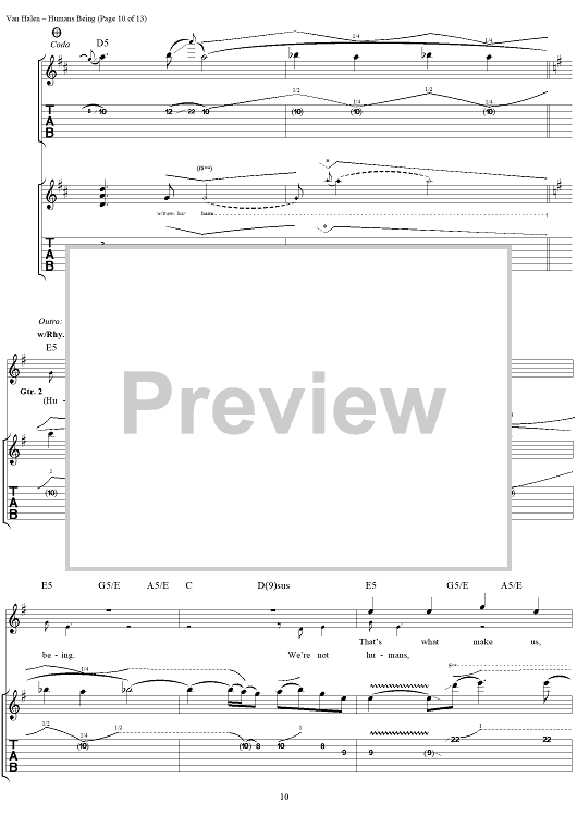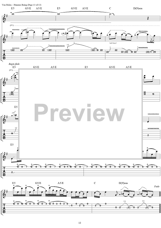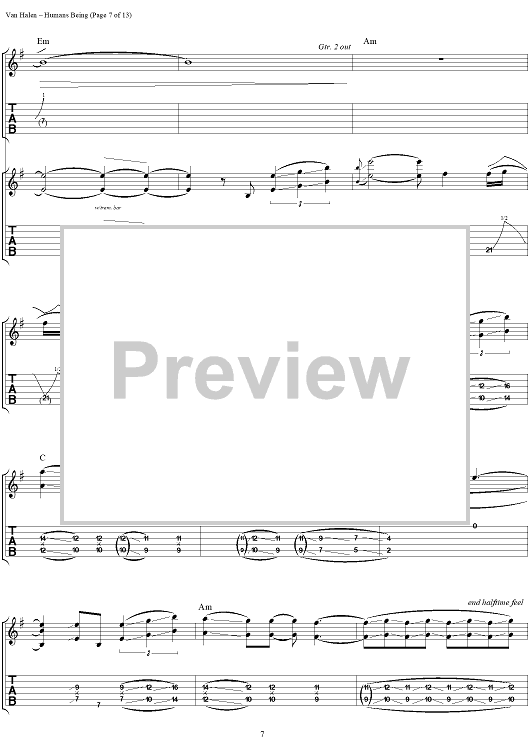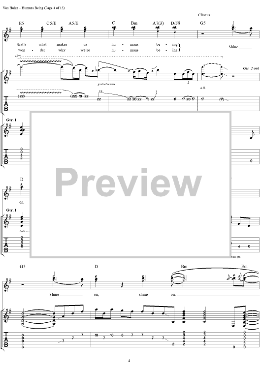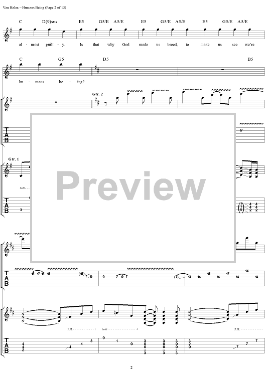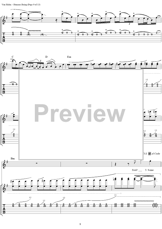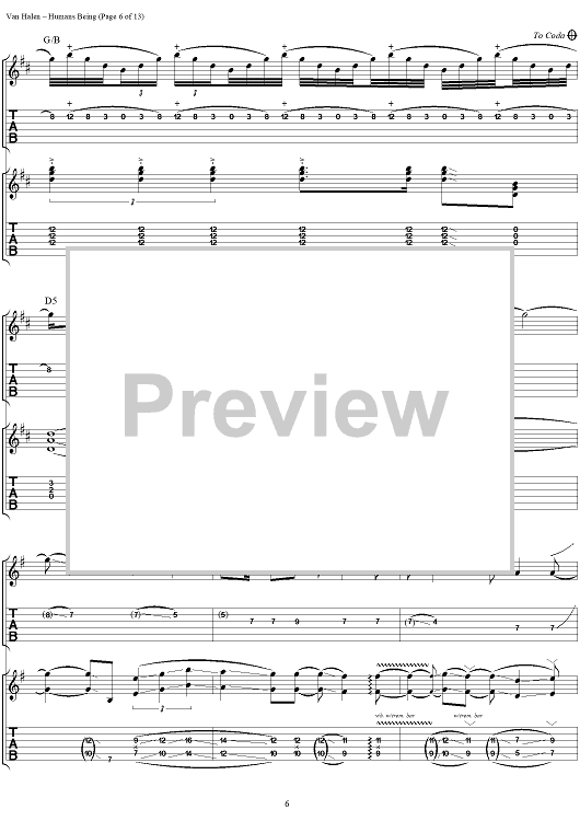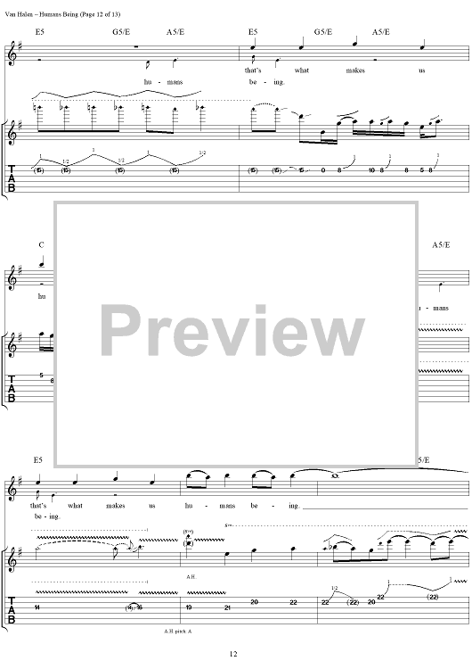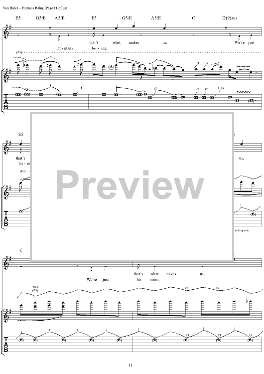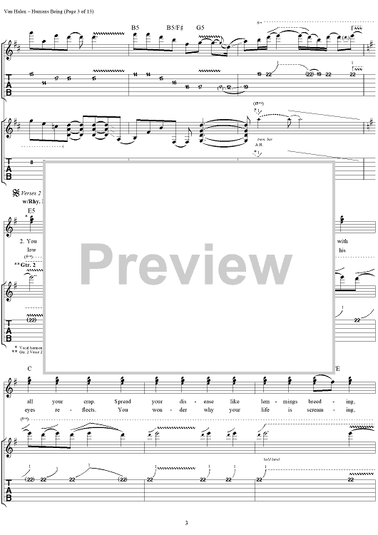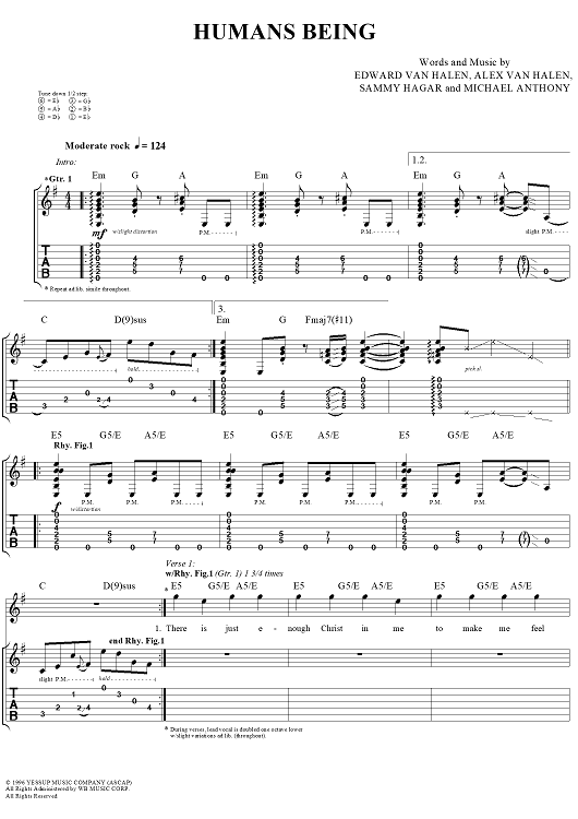 Digital Sheet Music for Humans Being by Eddie Van Halen, Sammy Hagar, Michael Anthony, Alex Van Halen, Van Halen scored for Guitar Tab/Vocal; id:112545