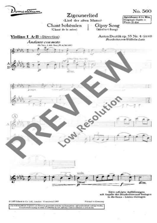 "Humoreske / Gipsy Song (Mother's Song) - Violin I A/b" Sheet Music by Antonín Dvorák