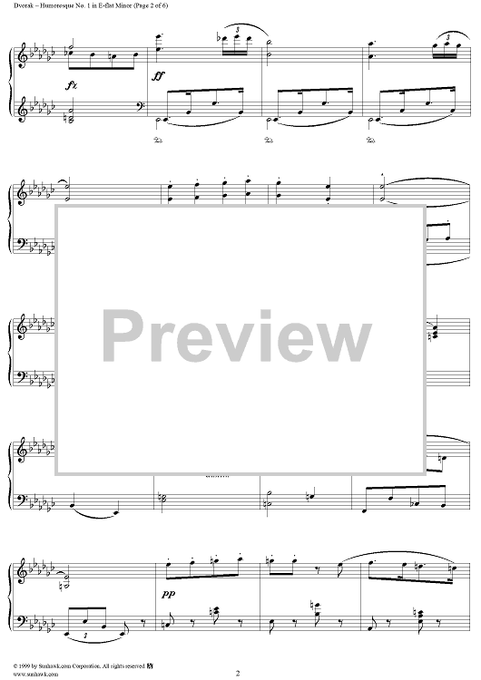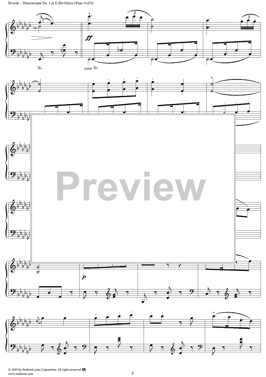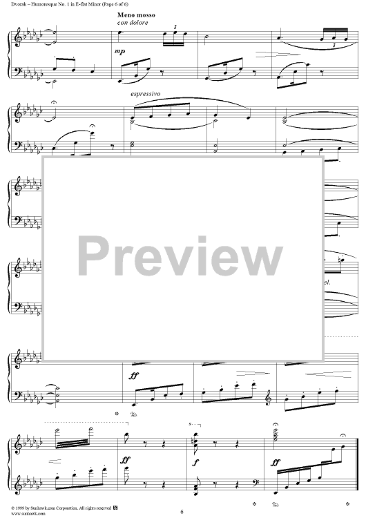Digital Sheet Music for Humoresque No. 1 in E-flat Minor - from "Humoresques" - Op. 101 - B187 by Antonín Dvorák scored for Piano Solo; id:271038