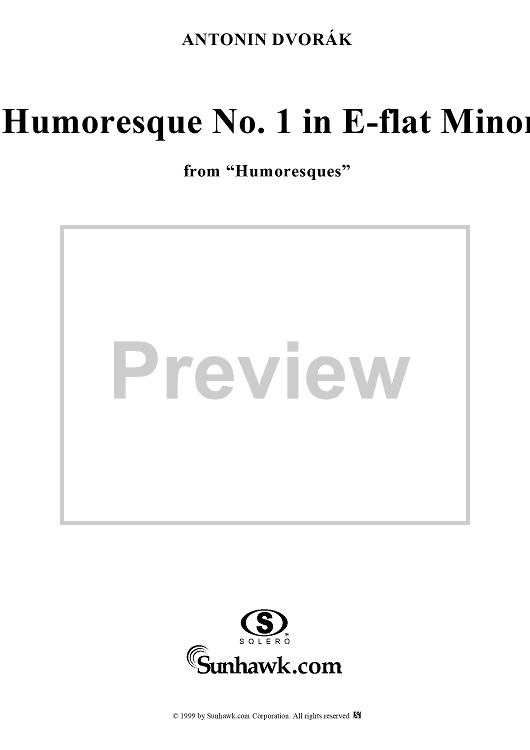 "Humoresque No. 1 in E-flat Minor - from "Humoresques" - Op. 101 - B187" Sheet Music by Antonín Dvorák