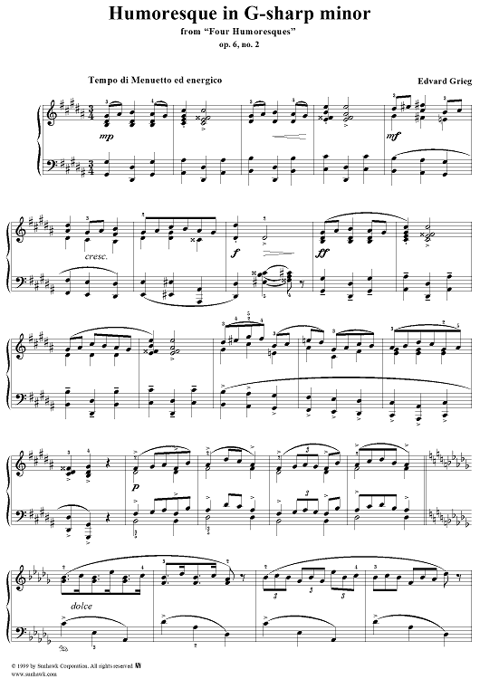 "Humoresque No. 2 in G-sharp minor - from "Four Humoresques" Op. 6" Sheet Music by Edvard Grieg