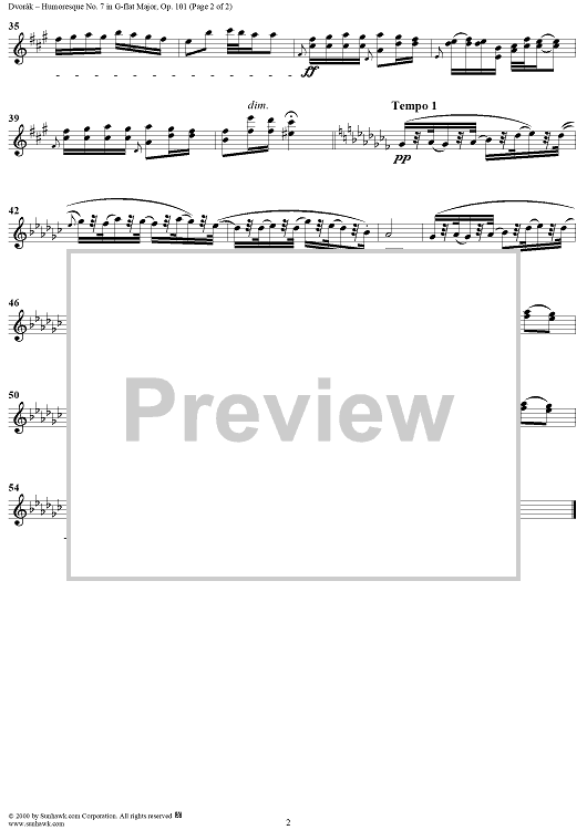 "Humoresque No. 7 - Violin" Sheet Music by Antonín Dvorák