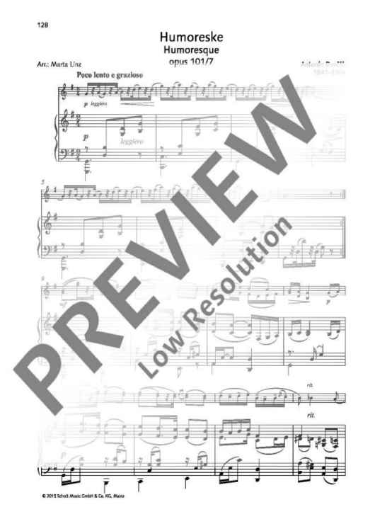 Digital Sheet Music for Humoresque by Antonín Dvorák, Martha Linz scored for Violin And Piano; id:488941