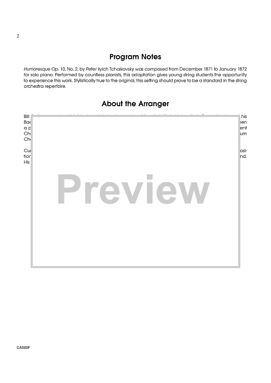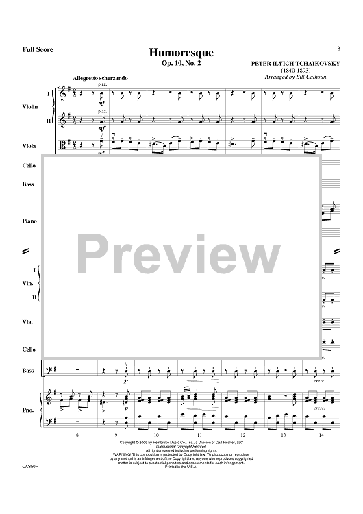 Digital Sheet Music for Humoresque - Score by Bill Calhoun, Peter Ilyich Tchaikovsky scored for Orchestra; id:408271