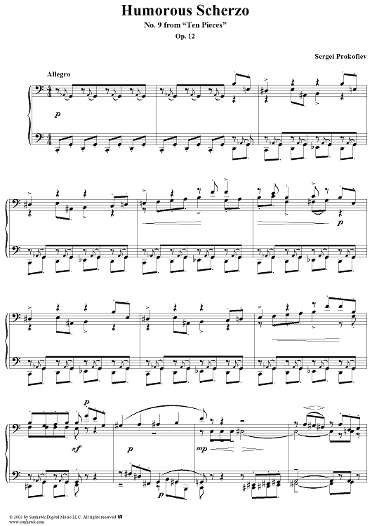 "Humorous Scherzo, No. 9 from "Ten Pieces", Op. 12" Sheet Music by Sergei Prokofiev