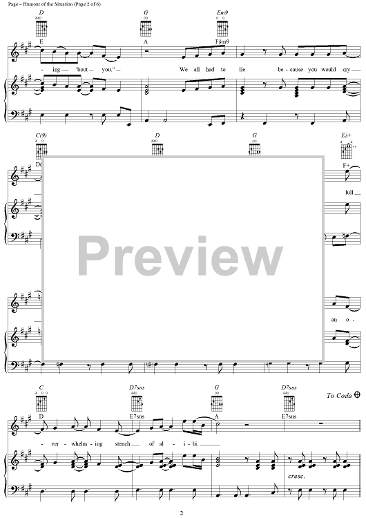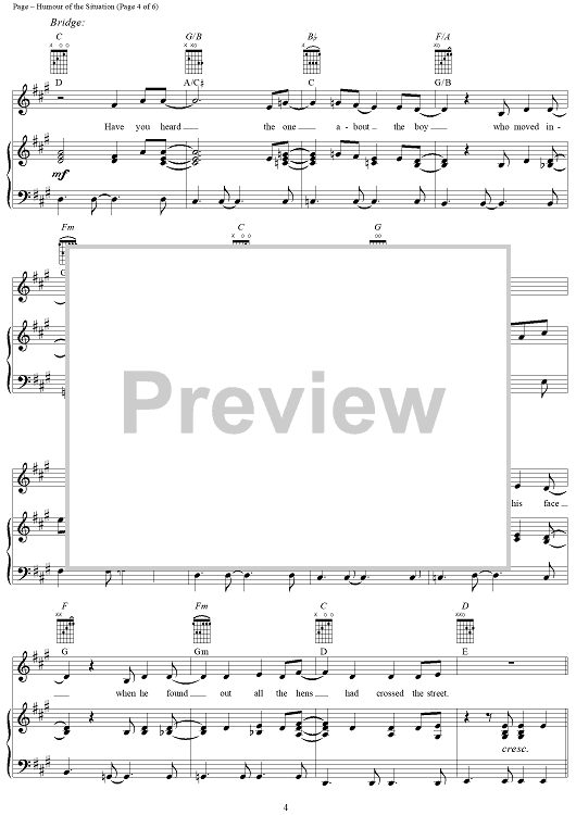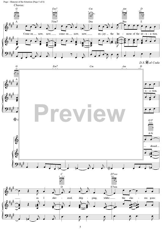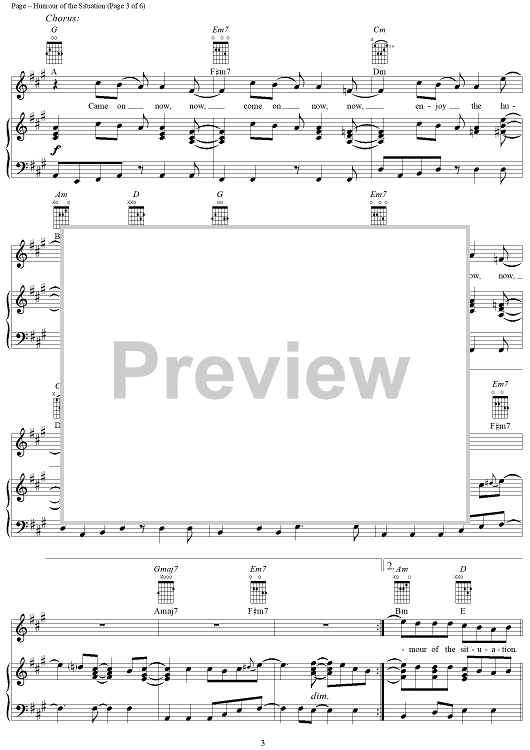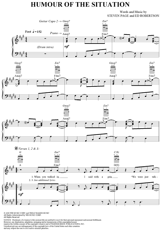 Digital Sheet Music for Humour of the Situation by Steven Page, Ed Robertson, Barenaked Ladies scored for Piano/Vocal/Chords; id:286293