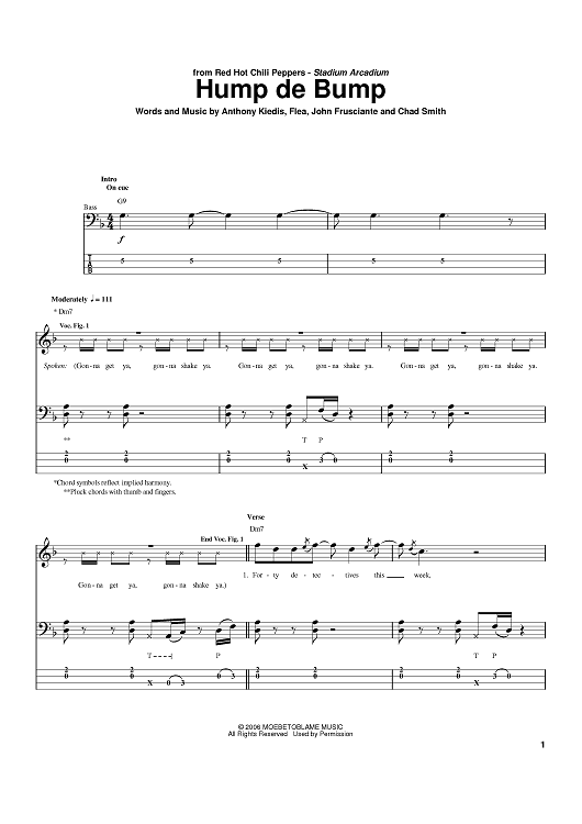 Digital Sheet Music for Hump De Bump by Flea, John Frusciante, Anthony Kiedis, Red Hot Chili Peppers, Chad Smith scored for Bass Tab; id:391993