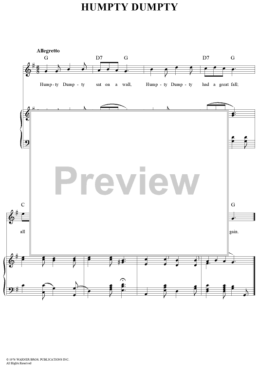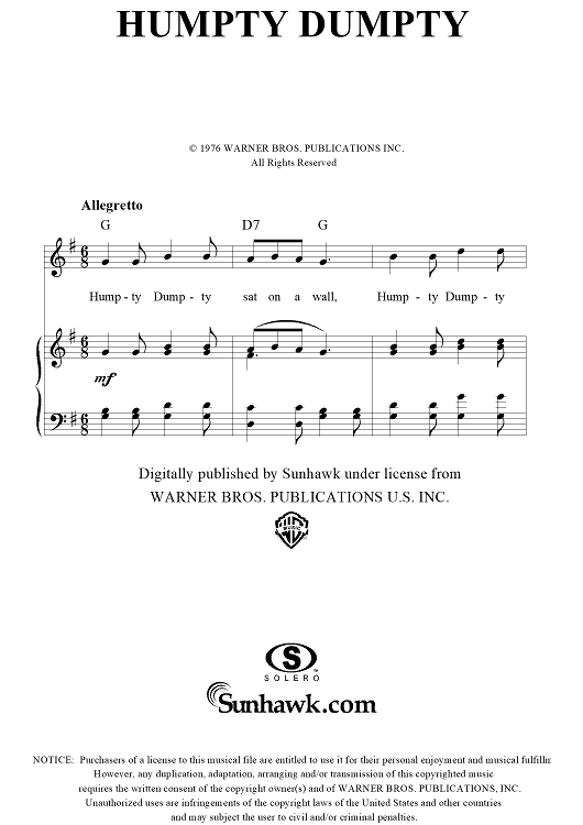 Digital Sheet Music for Humpty Dumpty by scored for Piano/Vocal/Chords; id:116207