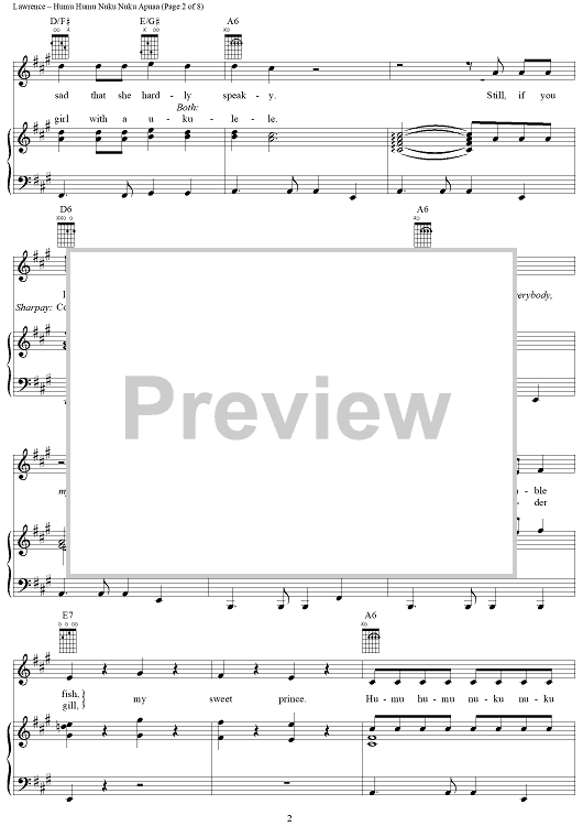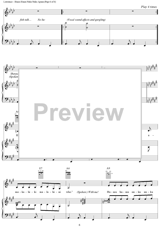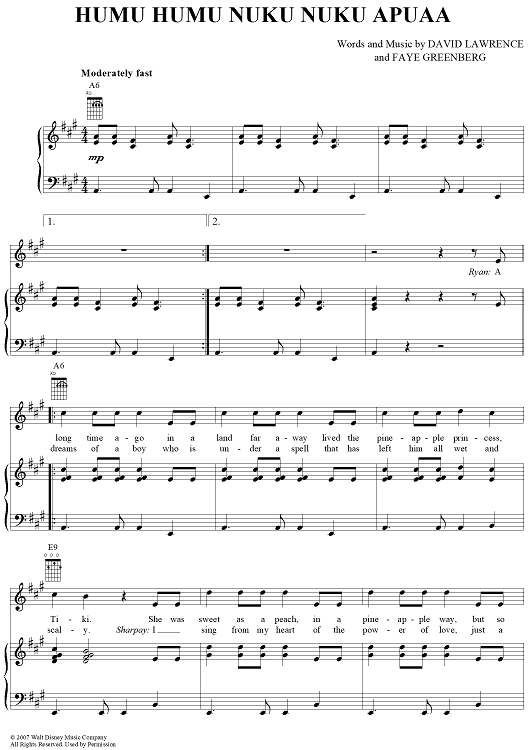 Digital Sheet Music for Humu Humu Nuku Nuku Apuaa by David Lawrence, Faye Greenberg scored for Piano/Vocal/Chords; id:366949