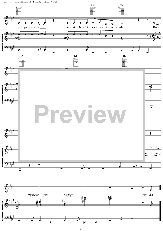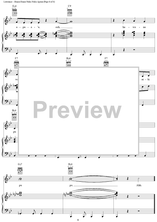 "Humu Humu Nuku Nuku Apuaa" Sheet Music by David Lawrence