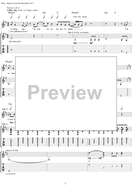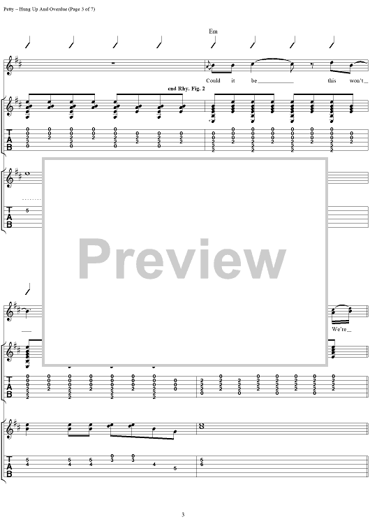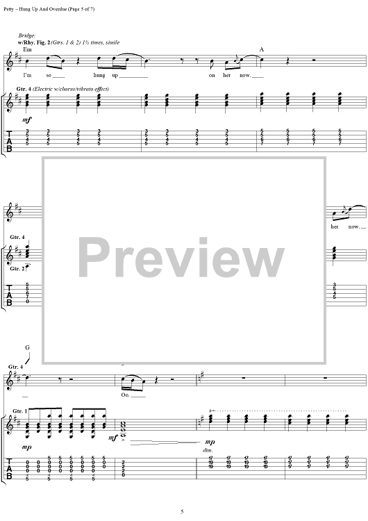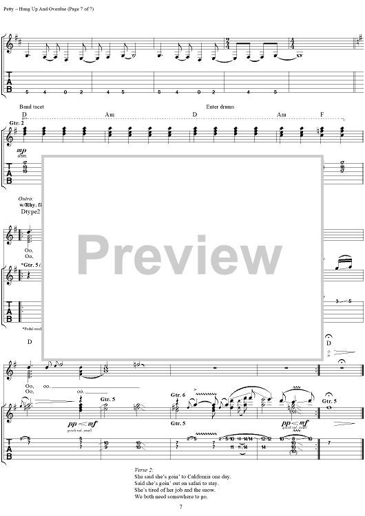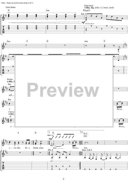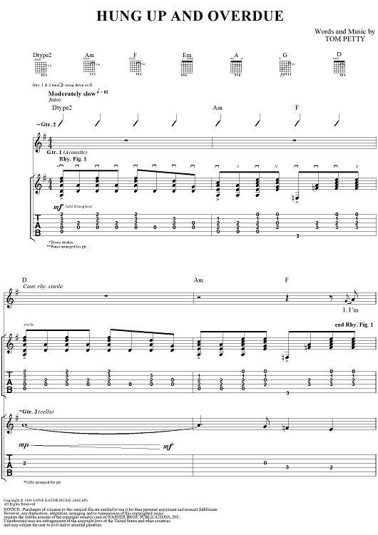 Digital Sheet Music for Hung Up and Overdue by Tom Petty scored for Guitar Tab/Vocal; id:112224