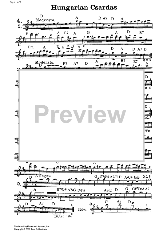 "Hungarian Csardas No. 4" Sheet Music by Traditional