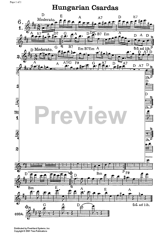 "Hungarian Csardas No. 6" Sheet Music by Traditional