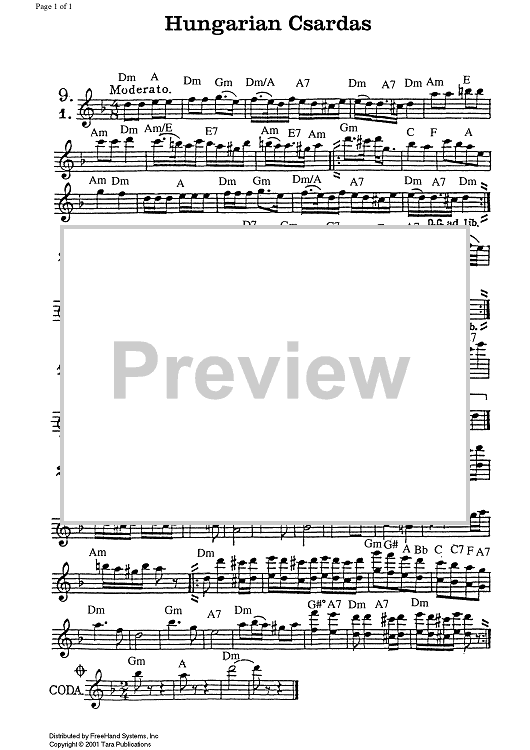 "Hungarian Csardas No. 9" Sheet Music by Traditional
