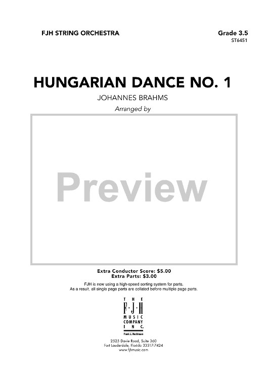 "Hungarian Dance No. 1 - Score" Sheet Music by Johannes Brahms