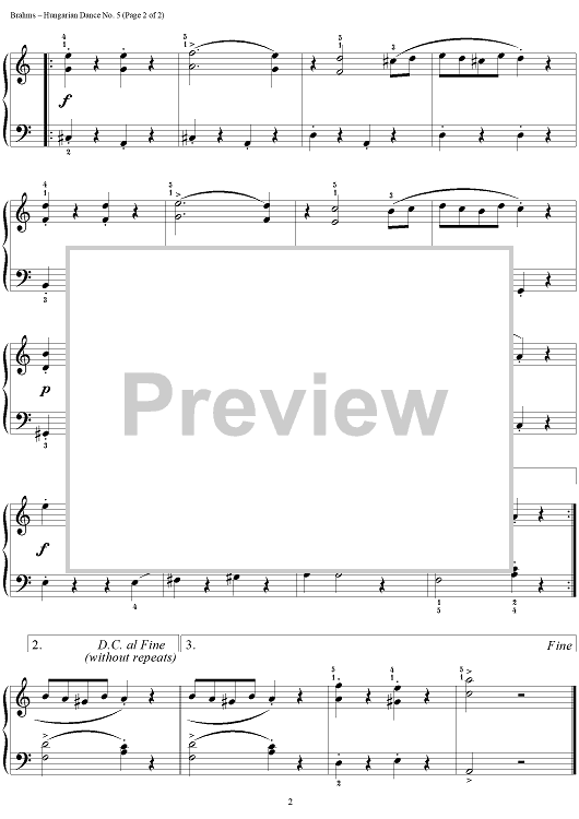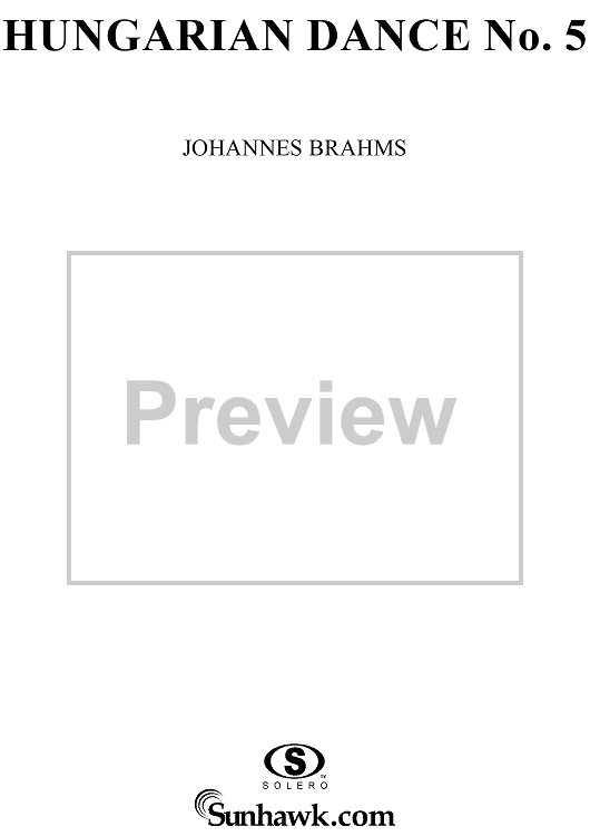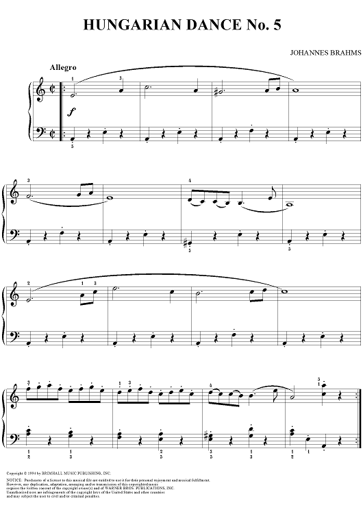 Digital Sheet Music for Hungarian Dance No. 5 by Johannes Brahms, John Brimhall scored for Easy Piano; id:274266