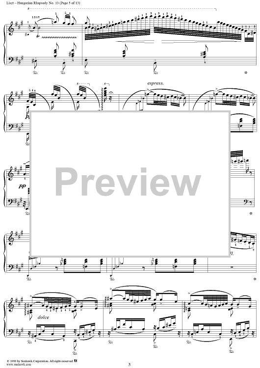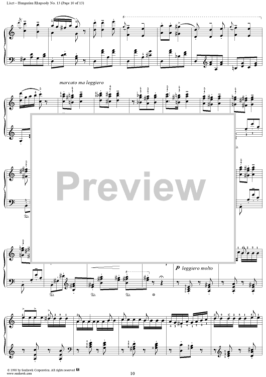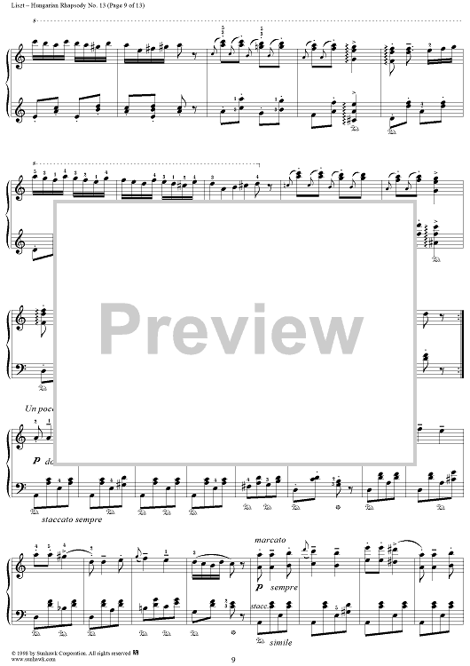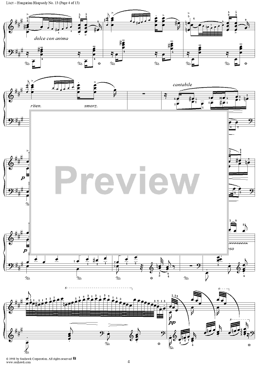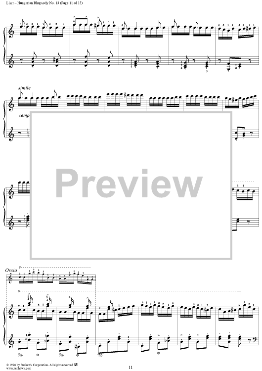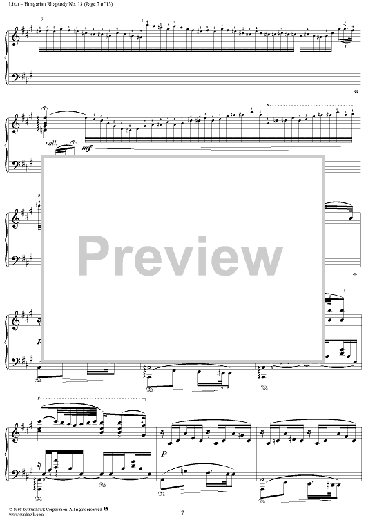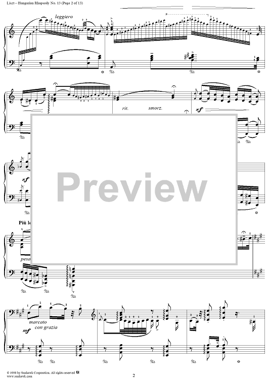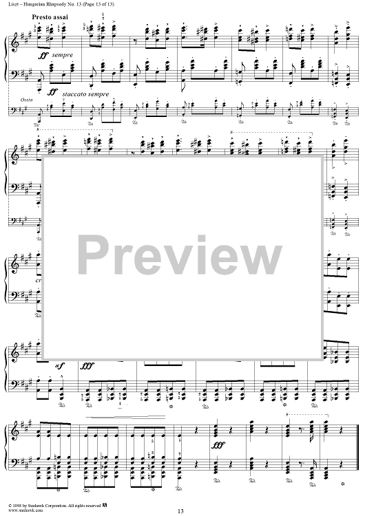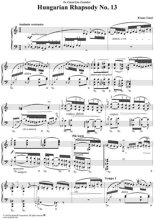 "Hungarian Rhapsody No. 13 in A minor" Sheet Music by Franz Liszt