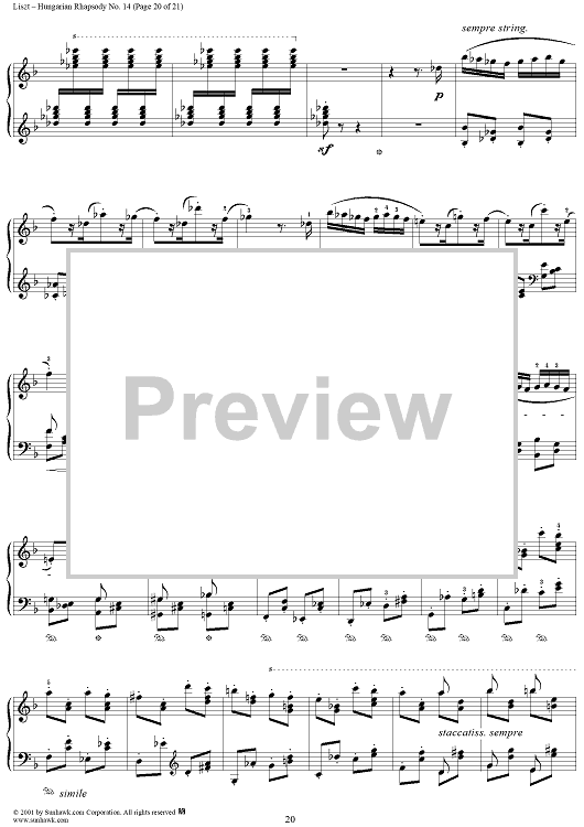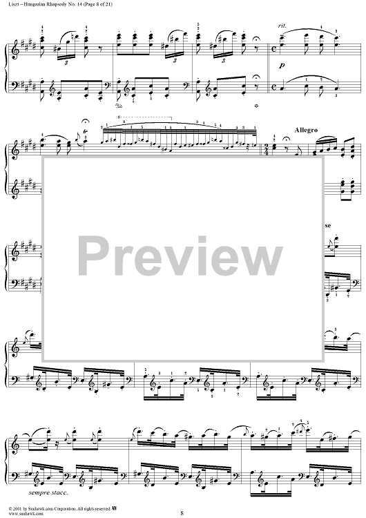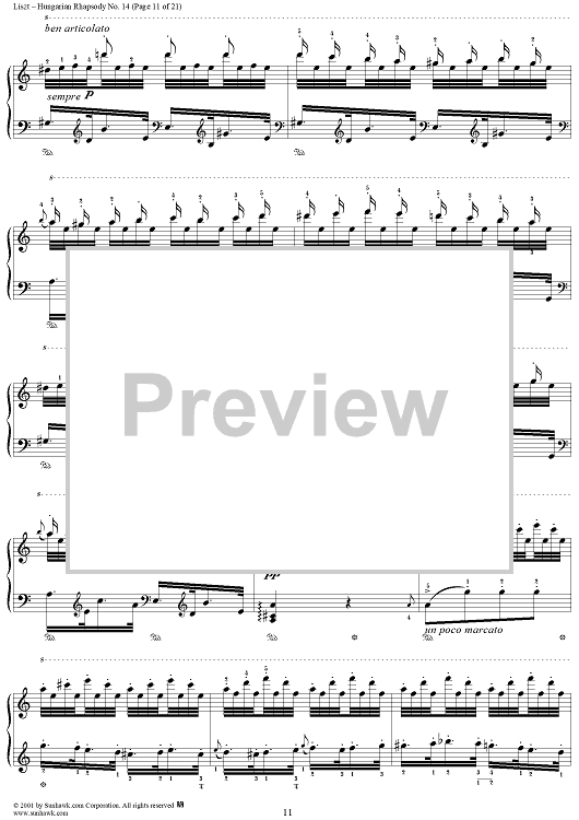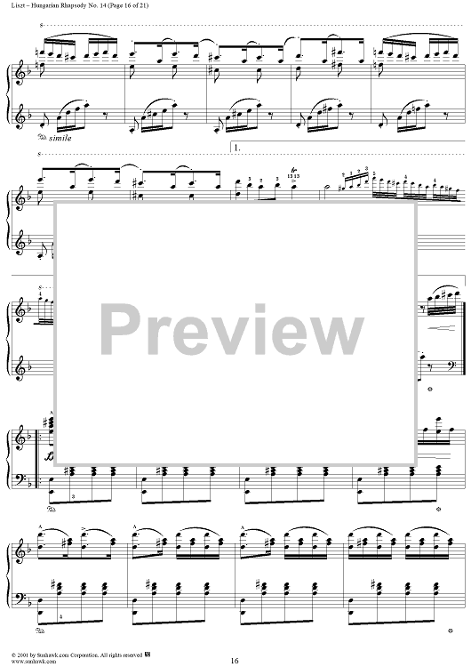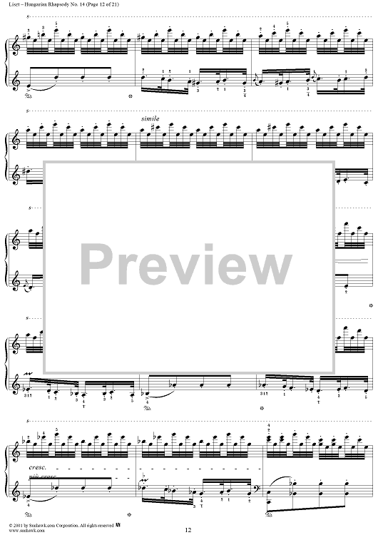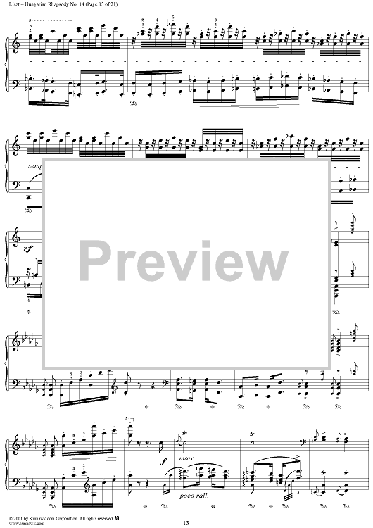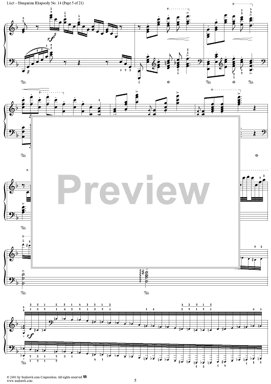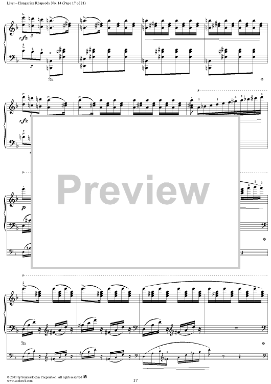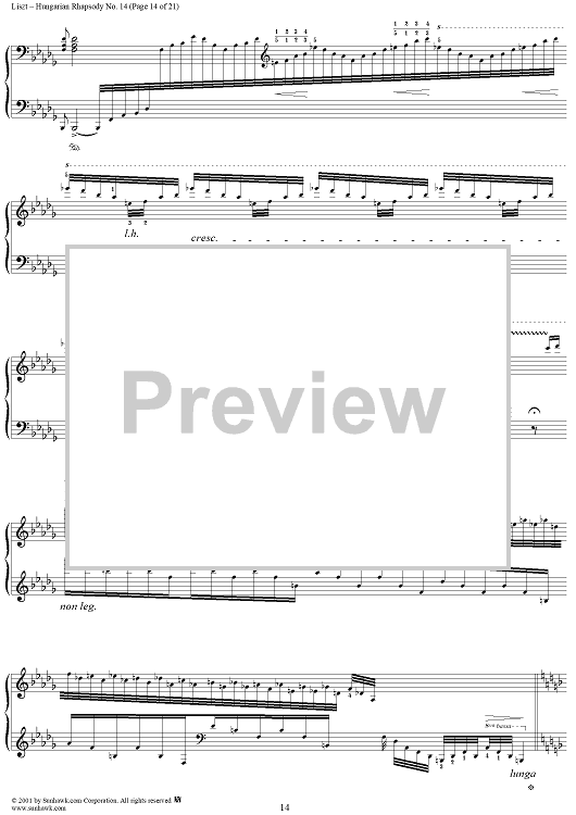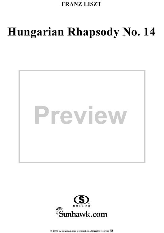 "Hungarian Rhapsody No. 14 in F Major" Sheet Music by Franz Liszt