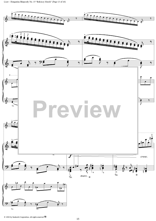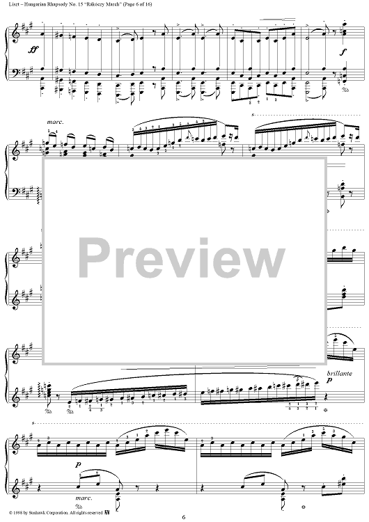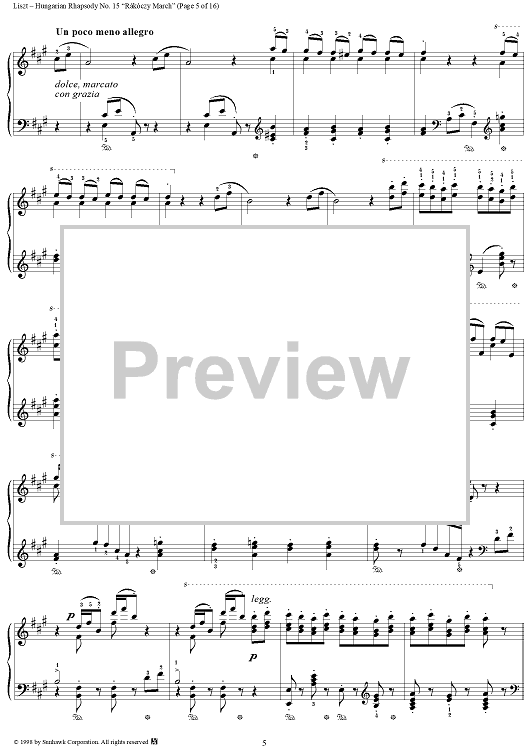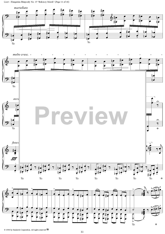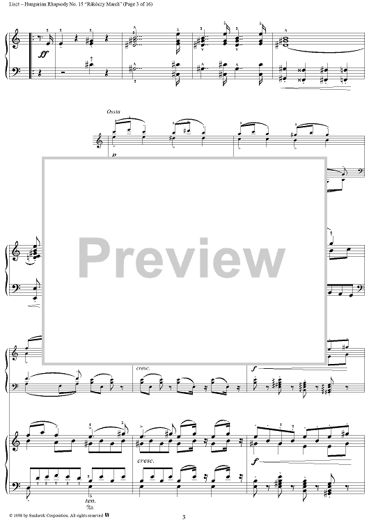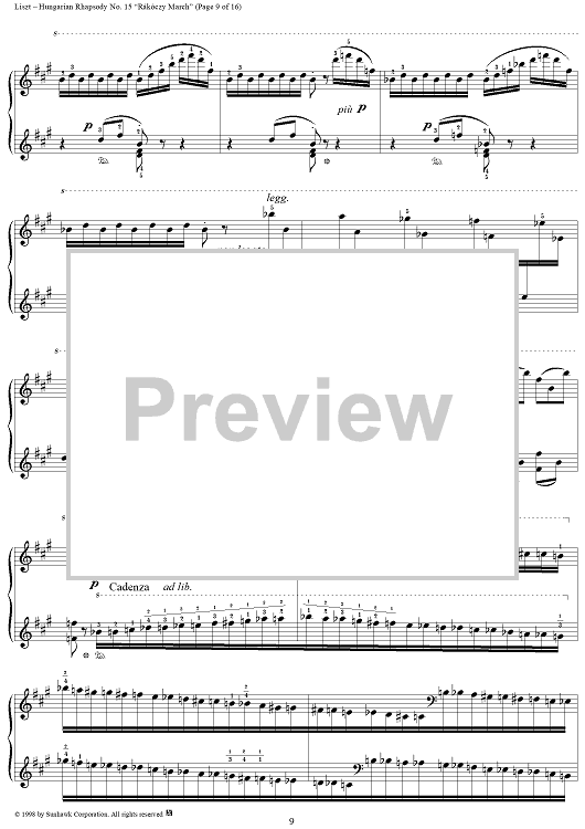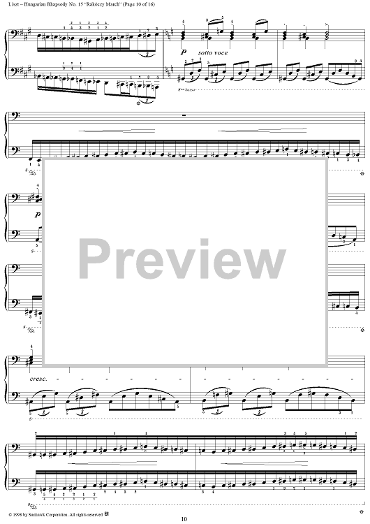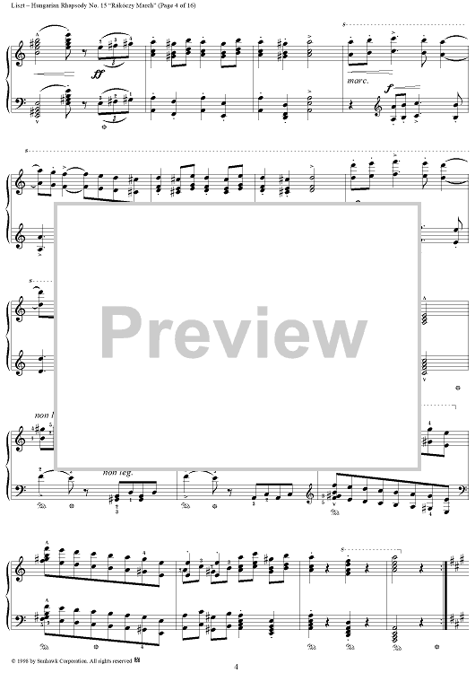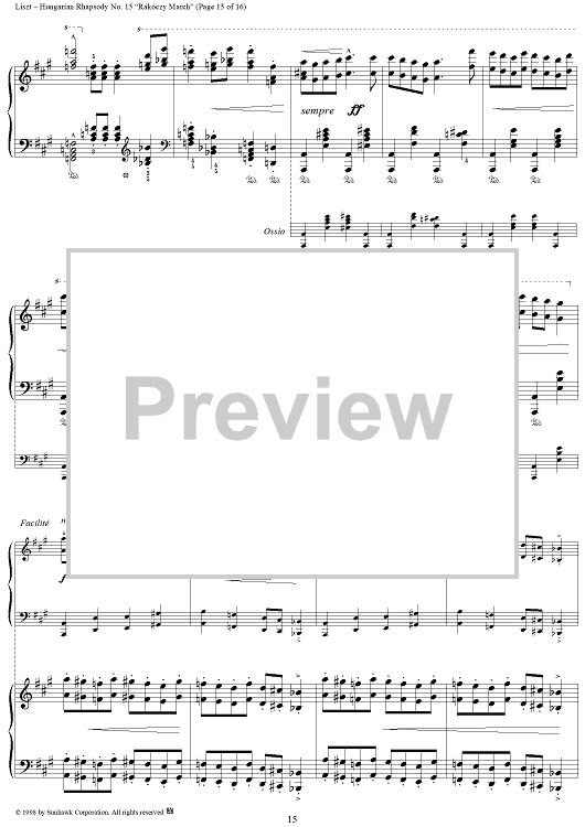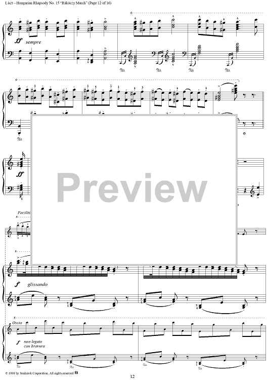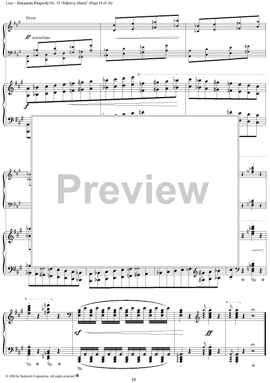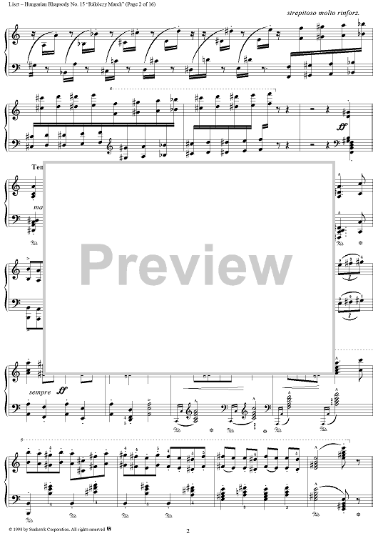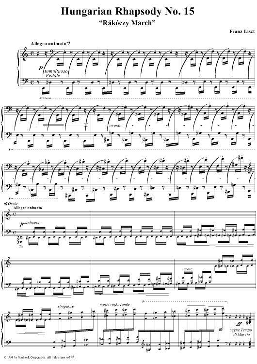 "Hungarian Rhapsody No. 15 in A minor" Sheet Music by Franz Liszt