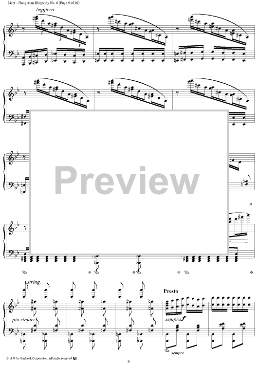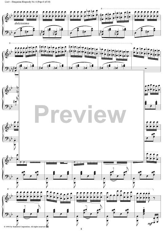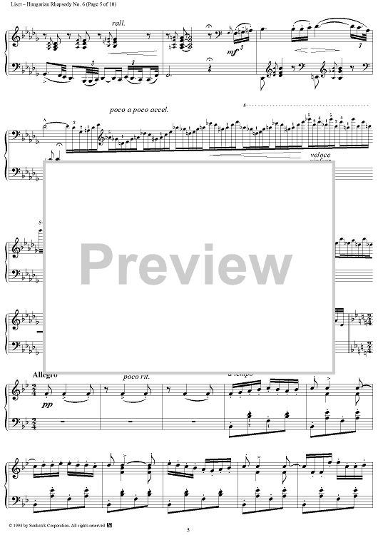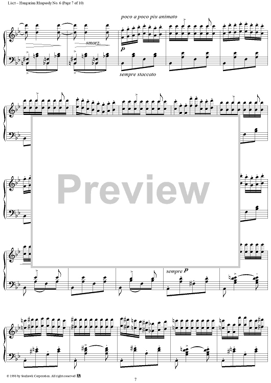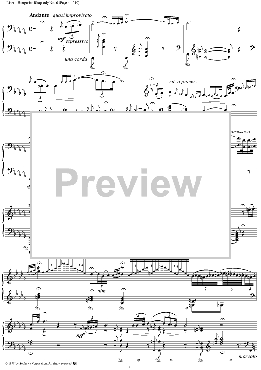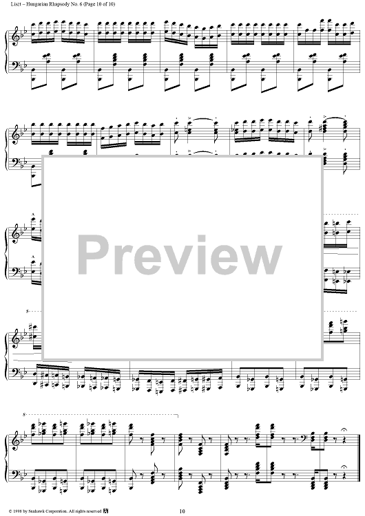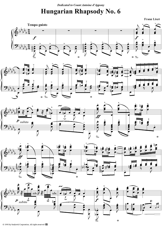 "Hungarian Rhapsody No. 6 in D-flat Major" Sheet Music by Franz Liszt