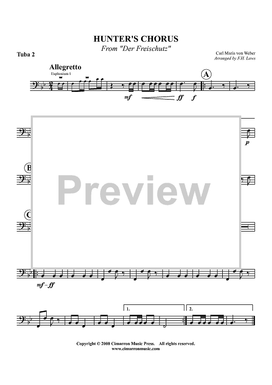 "Hunter's Chorus - from "Der Freischutz" - Tuba 2" Sheet Music by Carl Maria Von Weber