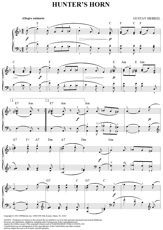 Digital Sheet Music for Hunter's Horn by Gustav Merkel scored for Piano Solo; id:252165
