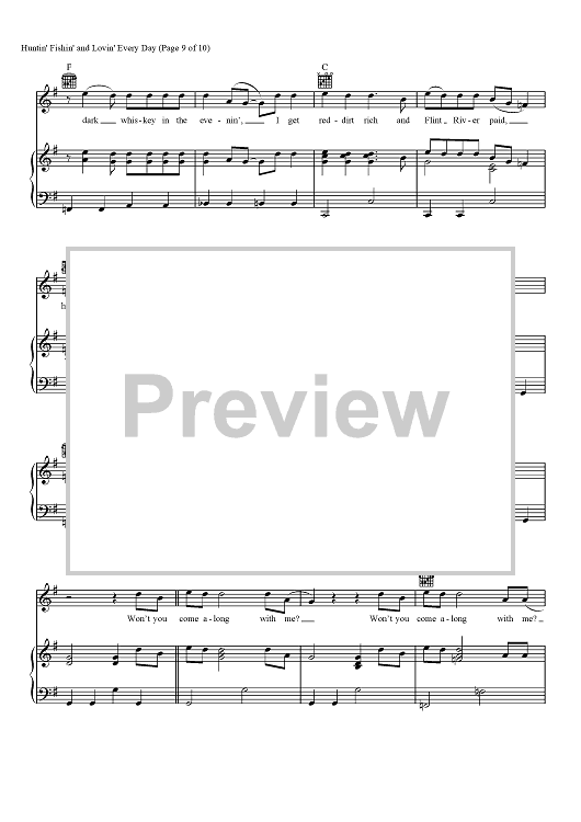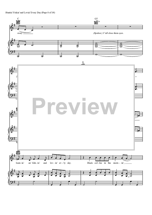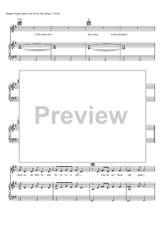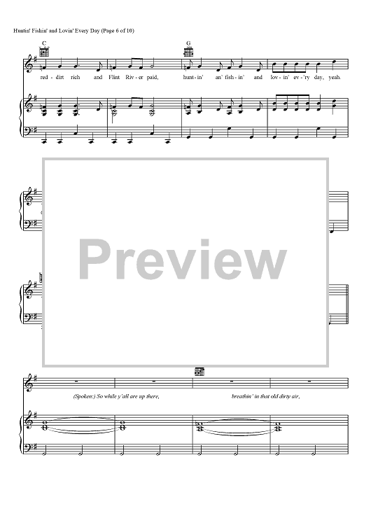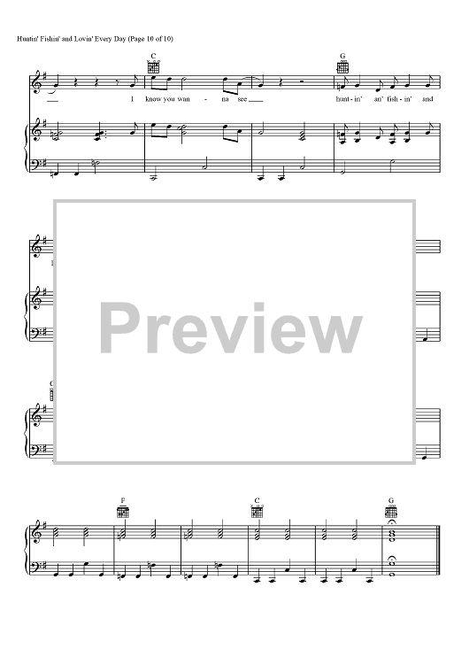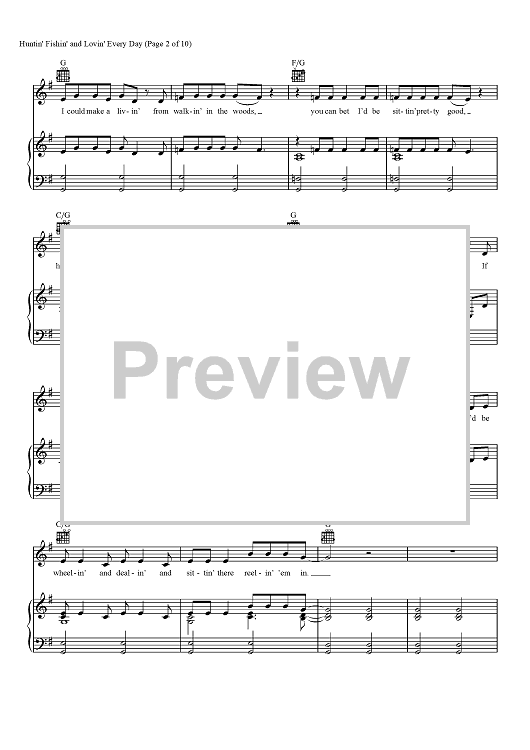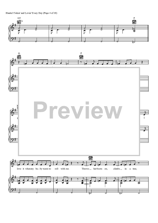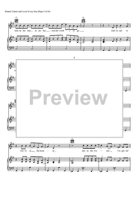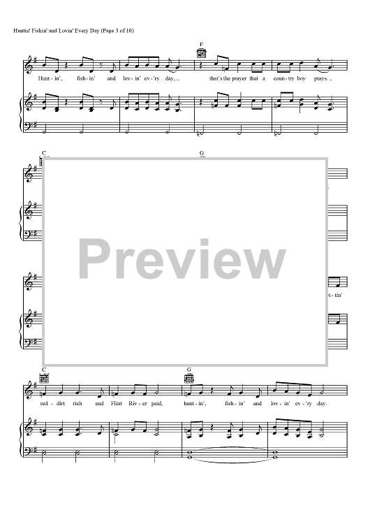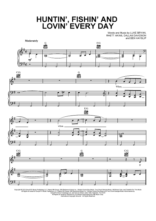 Digital Sheet Music for Huntin', Fishin' and Lovin Every Day by Luke Bryan, Dallas Davidson, Ben Hayslip, Rhett Atkins scored for Piano/Vocal/Chords; id:458163
