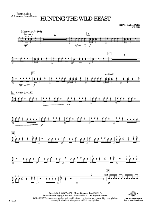 "Hunting the Wild Beast - Percussion" Sheet Music by Brian Balmages