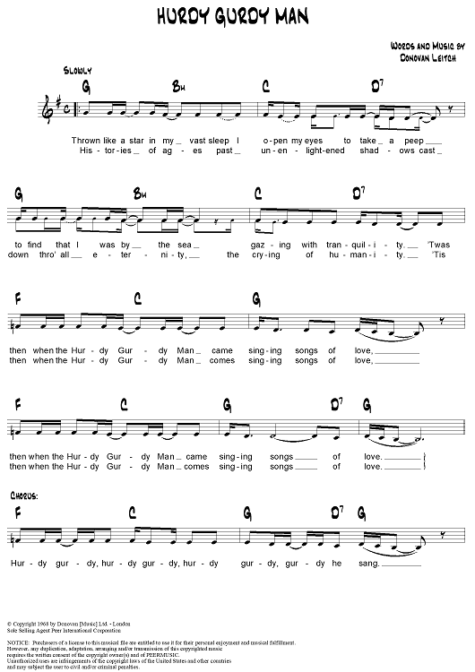 "Hurdy Gurdy Man" Sheet Music by Donovan