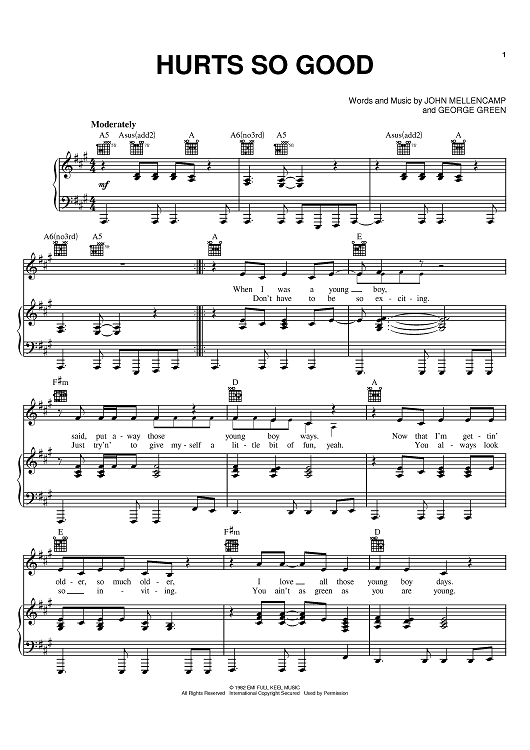 "Hurts So Good" Sheet Music by John Cougar Mellencamp