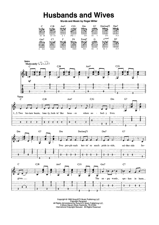 Digital Sheet Music for Husbands and Wives by Roger Miller scored for Easy Guitar Tab/Vocal/Chords; id:456731