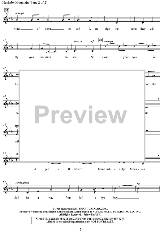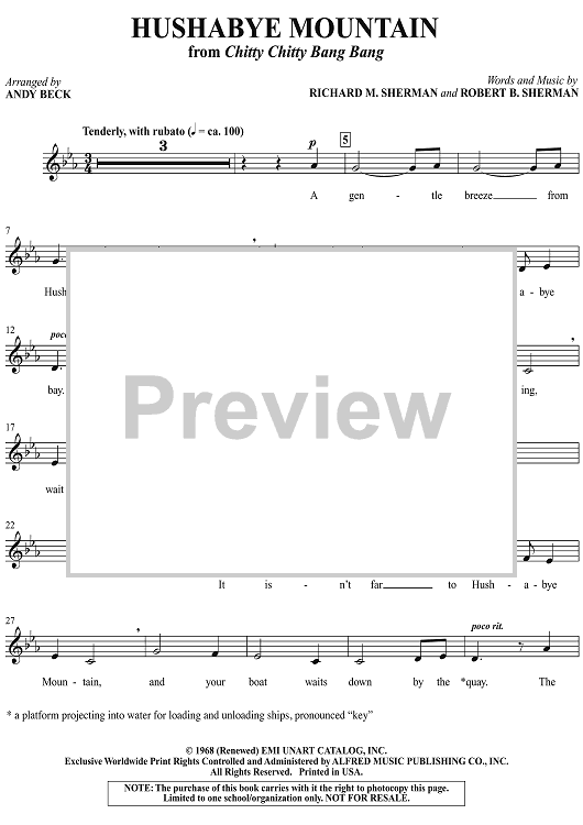 "Hushabye Mountain (from "Chitty Chitty Bang Bang")" Sheet Music by Richard M. Sherman