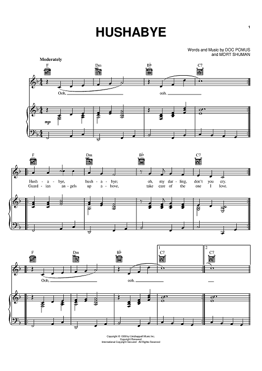 Digital Sheet Music for Hushabye by Doc Pomus, Mort Shuman, Mystics scored for Piano/Vocal/Chords; id:369052